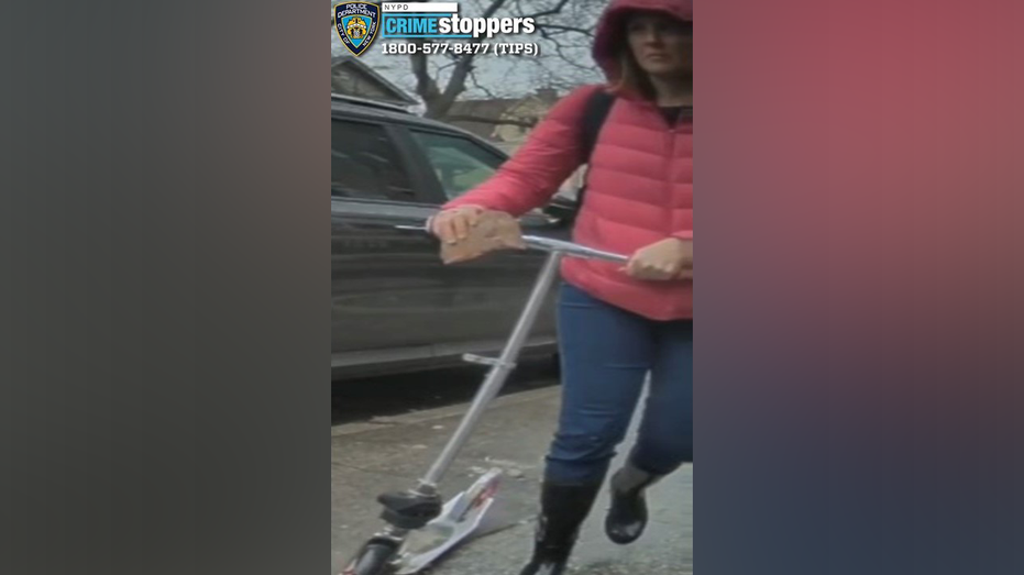 The NYPD is searching for a scooter-riding woman who left trash and a brick with swastika on a Tesla Cybertruck in a Brooklyn Jewish community.